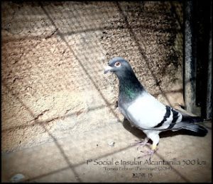 Esta fantástica paloma llamada «Cenicienta», 21.791-13 obtuvo un 1 social e insular en el gran fondo de la temporada 2014(Baza).Propiedad de Xec Meliá . Tiene una curiosa historia. Xec me pidio en su dia unas palomas para un amigo gallego. El día que las vino a buscar hubo una, de hecho fueron dos hermanos que yo no había anillado y que le entusiasmaron. Habían nacido creo que durante mi viaje a Canarias, no lo recuerdo…lo que si tengo presente es que jamás apunte quienes eran los padres(muy raro en mi), y que procedían de mi equipo de vuelo…y siempre quedó ese enigma en torno a este 1 social e insular de Baza. El caso es que Xec se las quedo, y dos años más tarde nació Cenicienta.
