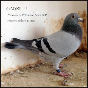 Ese mismo año 2012 . Estrella se consagraba como su nombre adelanta en una Estrella, 1 Social de Baza y única paloma comprobada en el día. ¡Bárbaro!. Hija de Nagual y la Sigilosa.Nagual(Suso &Valdepeñas)y la Sigilosa, hija de la rodada de Carlos. 100% pablos como a Toni gusta decir. Un año más tarde la fiesta continuó. Gabriele hacia acto de presencia con un 1 Social y 4 Insular de Baza. Sólo 4 palomas en el día en toda la isla. En aquella fatídica suelta de 224 palomas encestadas sólo regresaron 22, suelta del 9,84%. Hija de Simbad (Satan x La Sigilosa) el padre. Satán es hijo del 77 con la 4.000.La madre la 669 hija del 43 ( directo del Valdepeñas) con la Xana de Salord. 75% de mi línea.
