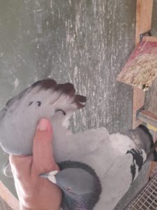 Semanas después este macho se enjauló para la suelta de Lisboa (900km) …resultado final de un 10% aprox y Ricard en esta ocasión no tuvo la fortuna de marcar….pero 3 días después de finalizar el concurso aparece él,(el de la fotografía de más arriba) con quien tenía mucha confianza…otra vez él…el nieto del 57 que llegó el segundo día del otro gran fondo-….mirad el ala….nunca sabremos que podría haber sucedido…en la foto por lo visto no se aprecia…pero sí, tiene las 10 activas, sino no podría haber volado…es un efecto visual…pero sin tras ala….en fin, un auténtico keniata! Un yearling con dos grandes fondos movidos…el segundo 900km fuera de control…pero con dos 🥚 🥚