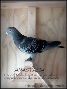 – 1 Social de Torrevieja  350 km club La Rápida  (Biel Antich)2016 – 1 Social  y 7 Insular de Villajoyosa del Grupo Mallorca contra 1602 palomas.(Biel Antich) año 2016. -2 Social  de Villajoyosa (Biel Antich) año 2016 – 6 Social de Tijola (510km) club La Rápida 2016(Biel Antich) – 2 Social de Torrevieja  350 km club La Rápida (Biel Antich)2016 . – AS paloma primera designada  del Club La Rápida.(Biel Antich)2016 – 1 social desde Villajoyosa y 7 del grupo Mallorca contra 804 palomas. (Biel Antich) año 2017 – 14 Insular del Grupo Mallorca de Baza contra 905 palomas (Biel Antich) año 2017. – 4 Social de Baza, 8 social de Marbella (Biel Antich)2017 – 2 Social desde MARBELLA en el club La Rápida (Biel Antich) año 2017.