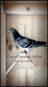 En la suelta de Torrevieja la 47292-15 hace 1 Social de Torrevieja 350 km hija de Anastasia, 1 y única paloma comprobada en el día de Marbella 750 km, de hace unas semanas. Era uno de los dos pichones que viajaba de ella.